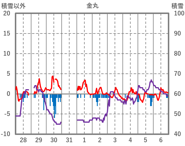| 日 | 時 | 気温 | 降水 | 風向/風速 | 日照 | 積雪 | 降雪 |