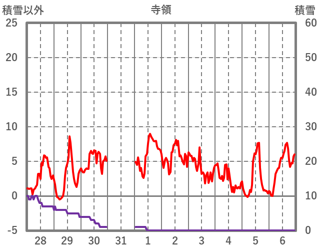 | 日 | 時 | 気温 | 降水 | 風向/風速 | 日照 | 積雪 | 降雪 |