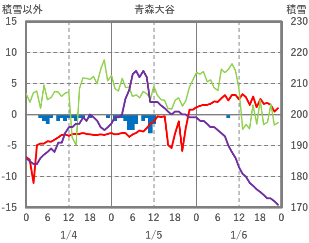 | 日 | 時 | 気温 | 降水 | 風向/風速 | 日照 | 積雪 | 降雪 |