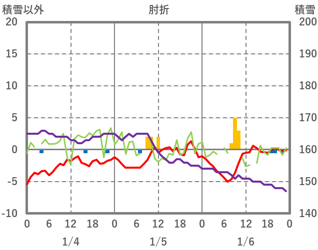 | 日 | 時 | 気温 | 降水 | 風向/風速 | 日照 | 積雪 | 降雪 |