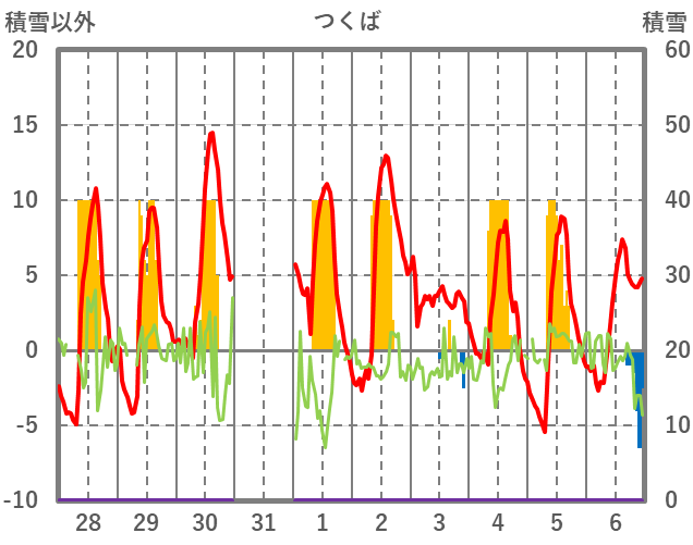 | 日 | 時 | 気温 | 降水 | 風向/風速 | 日照 | 積雪 | 降雪 |