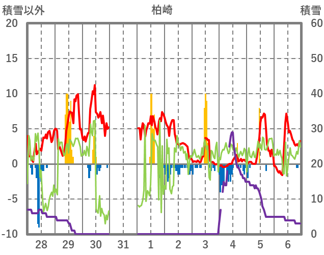 | 日 | 時 | 気温 | 降水 | 風向/風速 | 日照 | 積雪 | 降雪 |