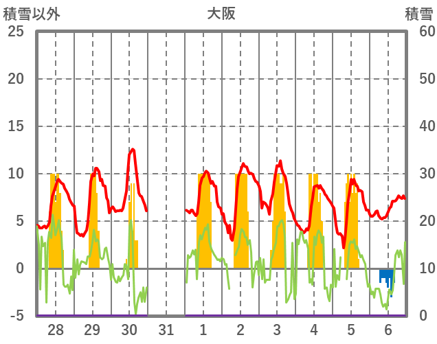 | 日 | 時 | 気温 | 降水 | 風向/風速 | 日照 | 積雪 | 降雪 |