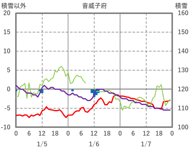 | 日 | 時 | 気温 | 降水 | 風向/風速 | 日照 | 積雪 | 降雪 |