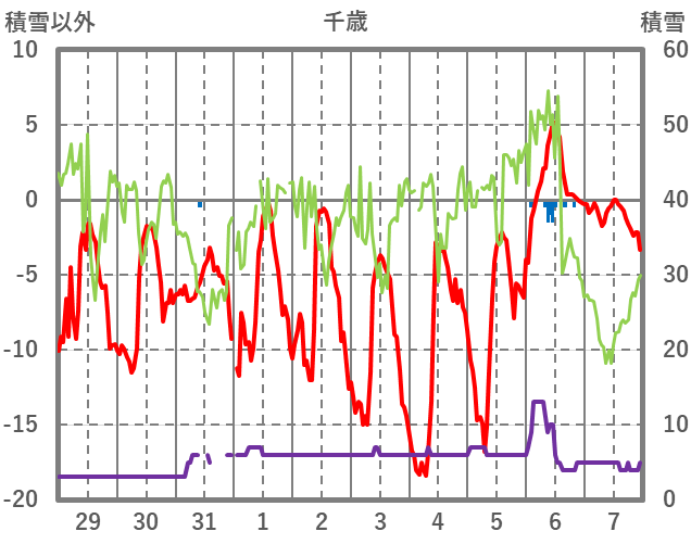 | 日 | 時 | 気温 | 降水 | 風向/風速 | 日照 | 積雪 | 降雪 |