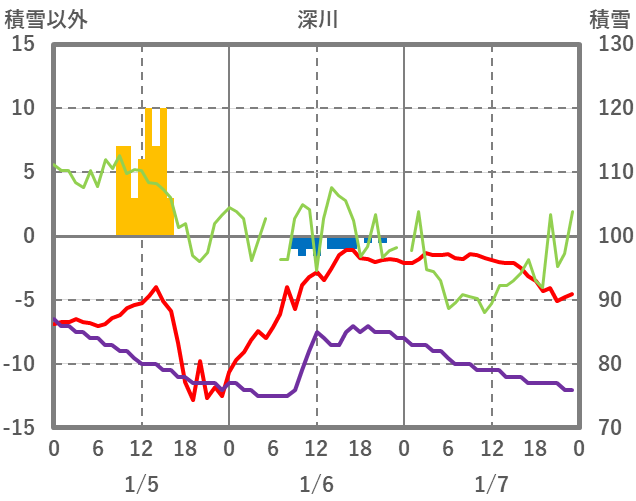 | 日 | 時 | 気温 | 降水 | 風向/風速 | 日照 | 積雪 | 降雪 |