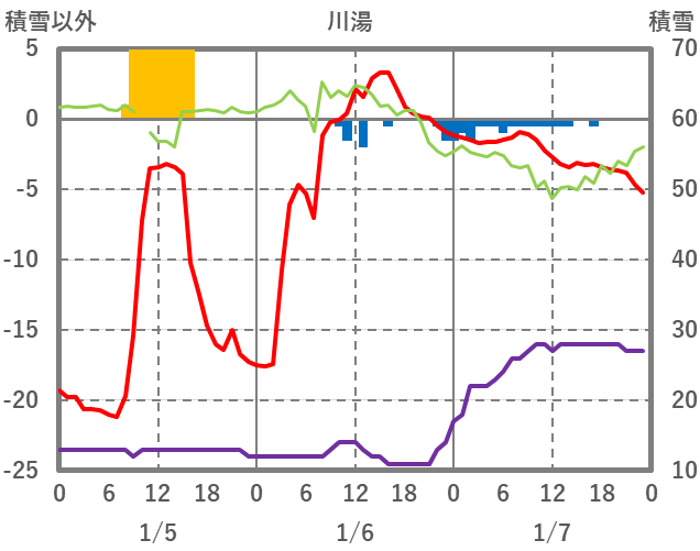 | 日 | 時 | 気温 | 降水 | 風向/風速 | 日照 | 積雪 | 降雪 |