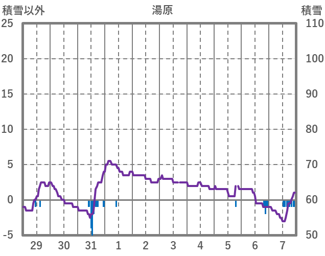 | 日 | 時 | 気温 | 降水 | 風向/風速 | 日照 | 積雪 | 降雪 |