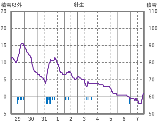 | 日 | 時 | 気温 | 降水 | 風向/風速 | 日照 | 積雪 | 降雪 |