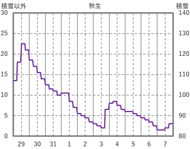 | 日 | 時 | 気温 | 降水 | 風向/風速 | 日照 | 積雪 | 降雪 |