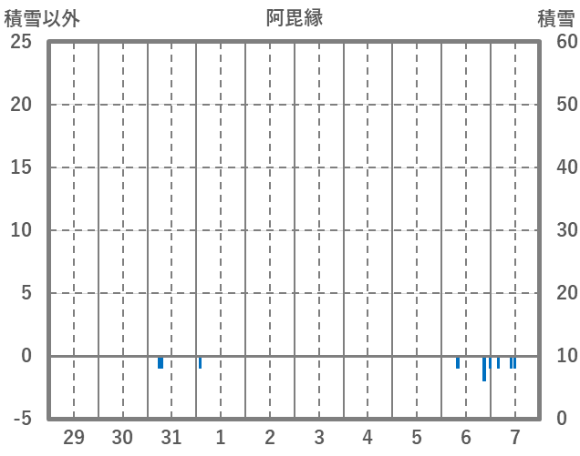 | 日 | 時 | 気温 | 降水 | 風向/風速 | 日照 | 積雪 | 降雪 |