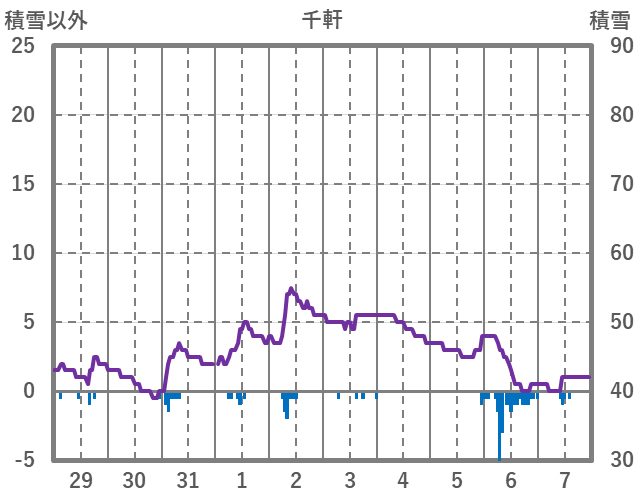 | 日 | 時 | 気温 | 降水 | 風向/風速 | 日照 | 積雪 | 降雪 |