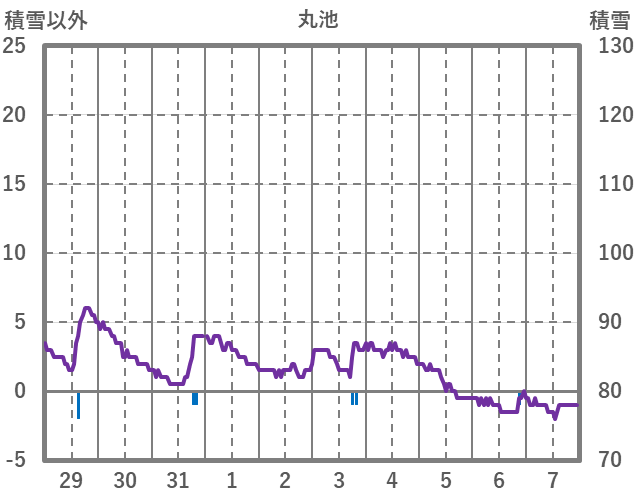 | 日 | 時 | 気温 | 降水 | 風向/風速 | 日照 | 積雪 | 降雪 |