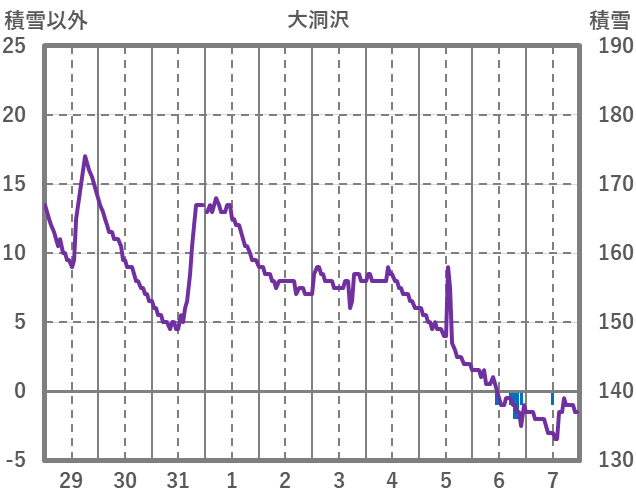 | 日 | 時 | 気温 | 降水 | 風向/風速 | 日照 | 積雪 | 降雪 |