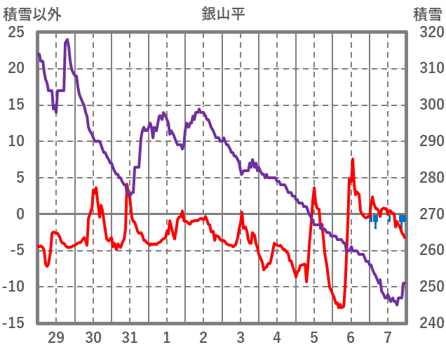 | 日 | 時 | 気温 | 降水 | 風向/風速 | 日照 | 積雪 | 降雪 |