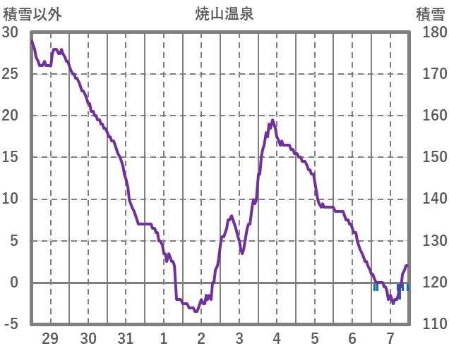 | 日 | 時 | 気温 | 降水 | 風向/風速 | 日照 | 積雪 | 降雪 |