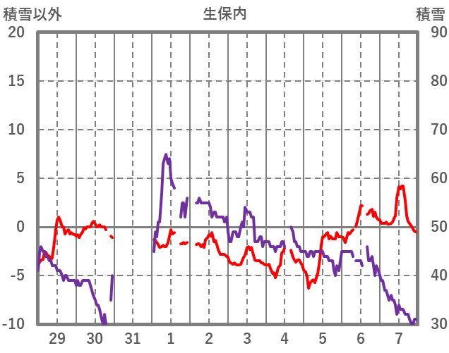 | 日 | 時 | 気温 | 降水 | 風向/風速 | 日照 | 積雪 | 降雪 |