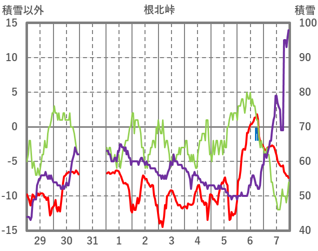 | 日 | 時 | 気温 | 降水 | 風向/風速 | 日照 | 積雪 | 降雪 |