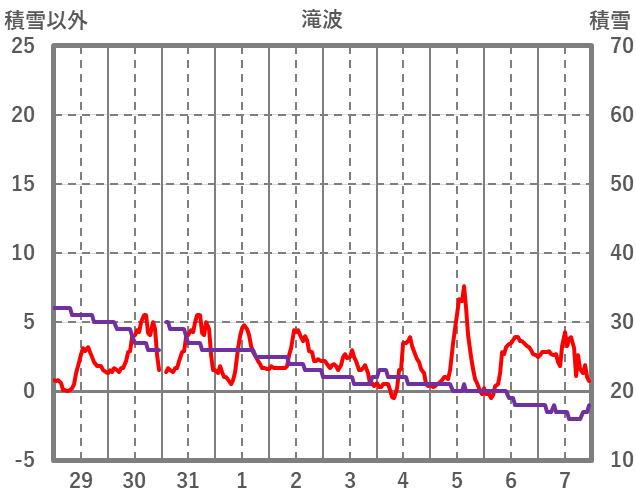 | 日 | 時 | 気温 | 降水 | 風向/風速 | 日照 | 積雪 | 降雪 |