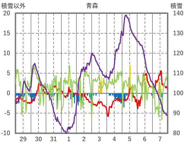 | 日 | 時 | 気温 | 降水 | 風向/風速 | 日照 | 積雪 | 降雪 |