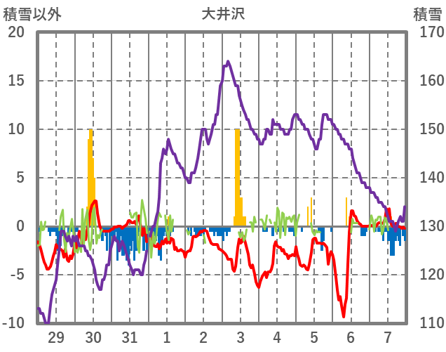 | 日 | 時 | 気温 | 降水 | 風向/風速 | 日照 | 積雪 | 降雪 |