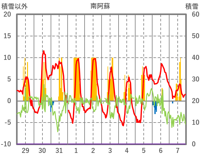 | 日 | 時 | 気温 | 降水 | 風向/風速 | 日照 | 積雪 | 降雪 |