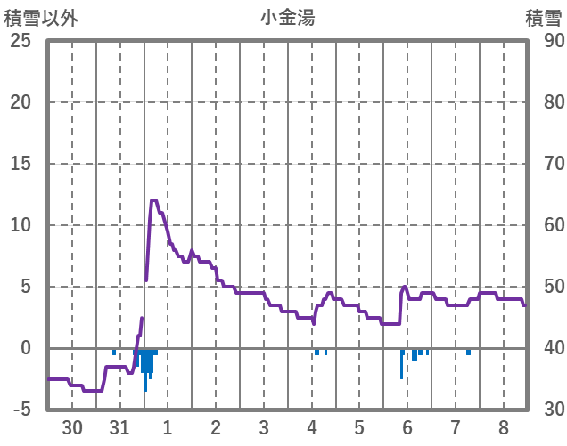 | 日 | 時 | 気温 | 降水 | 風向/風速 | 日照 | 積雪 | 降雪 |