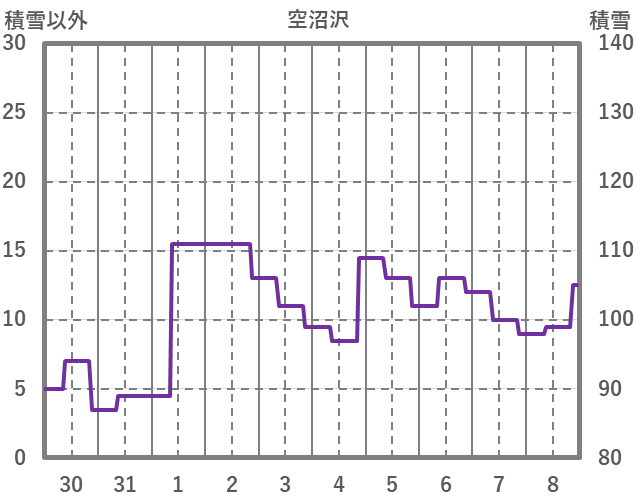 | 日 | 時 | 気温 | 降水 | 風向/風速 | 日照 | 積雪 | 降雪 |