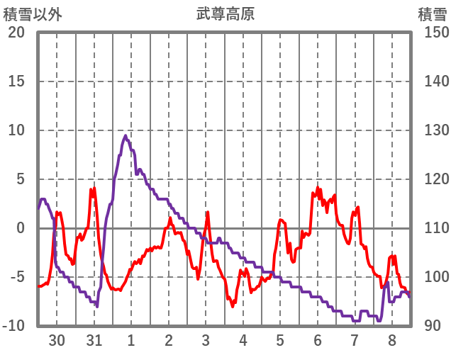 | 日 | 時 | 気温 | 降水 | 風向/風速 | 日照 | 積雪 | 降雪 |