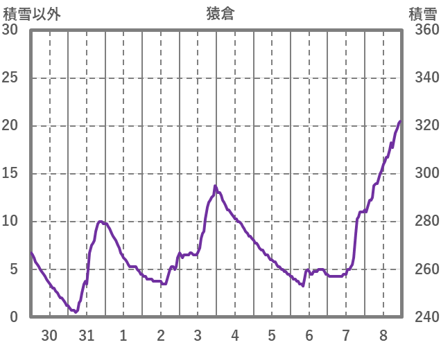 | 日 | 時 | 気温 | 降水 | 風向/風速 | 日照 | 積雪 | 降雪 |