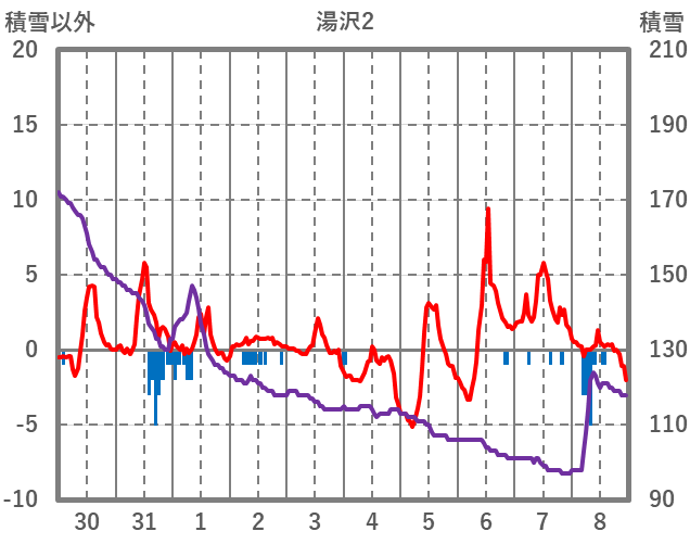 | 日 | 時 | 気温 | 降水 | 風向/風速 | 日照 | 積雪 | 降雪 |