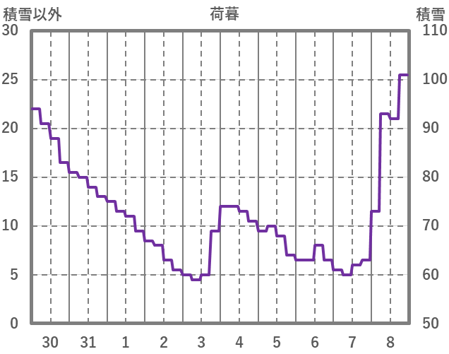 | 日 | 時 | 気温 | 降水 | 風向/風速 | 日照 | 積雪 | 降雪 |