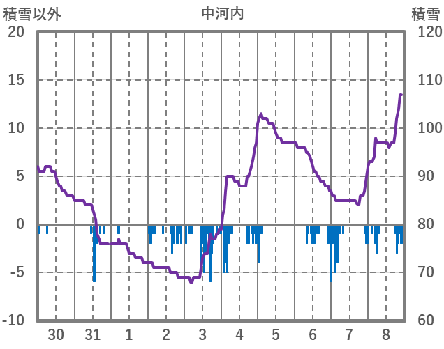 | 日 | 時 | 気温 | 降水 | 風向/風速 | 日照 | 積雪 | 降雪 |