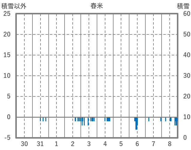 | 日 | 時 | 気温 | 降水 | 風向/風速 | 日照 | 積雪 | 降雪 |