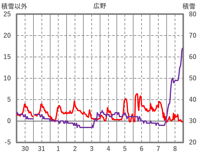 | 日 | 時 | 気温 | 降水 | 風向/風速 | 日照 | 積雪 | 降雪 |