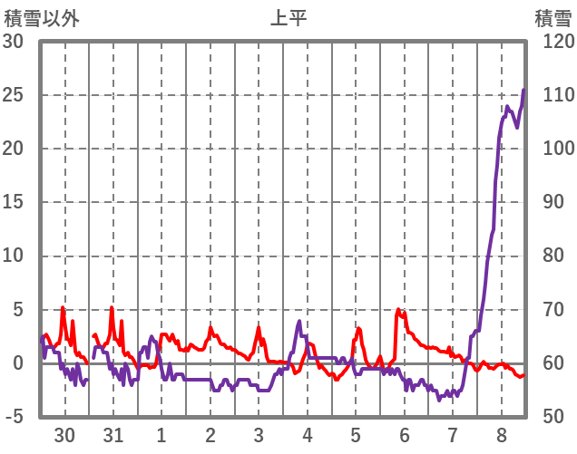 | 日 | 時 | 気温 | 降水 | 風向/風速 | 日照 | 積雪 | 降雪 |
