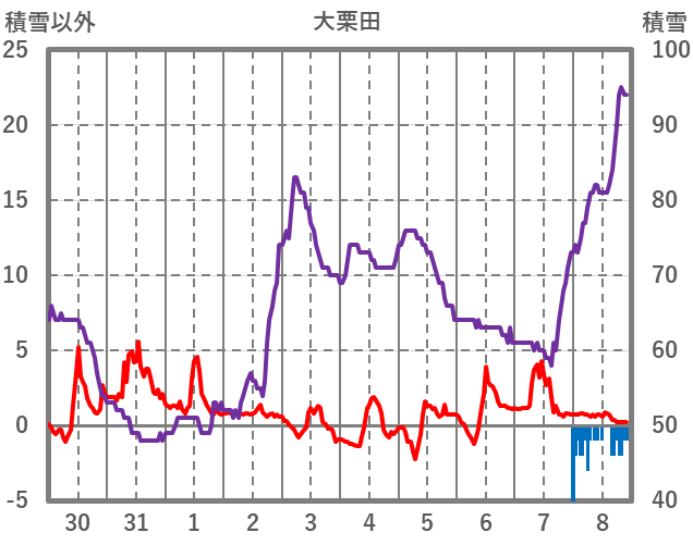 | 日 | 時 | 気温 | 降水 | 風向/風速 | 日照 | 積雪 | 降雪 |