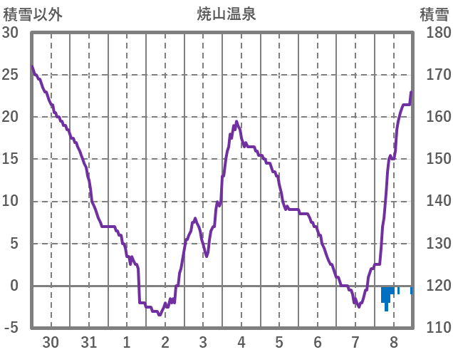 | 日 | 時 | 気温 | 降水 | 風向/風速 | 日照 | 積雪 | 降雪 |