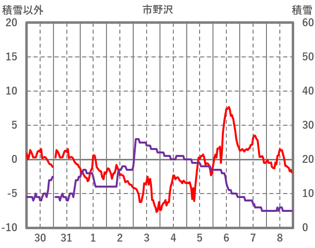 | 日 | 時 | 気温 | 降水 | 風向/風速 | 日照 | 積雪 | 降雪 |