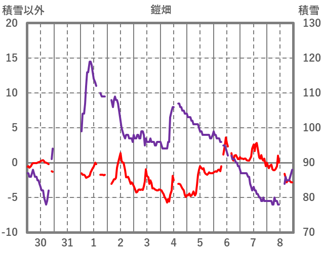 | 日 | 時 | 気温 | 降水 | 風向/風速 | 日照 | 積雪 | 降雪 |