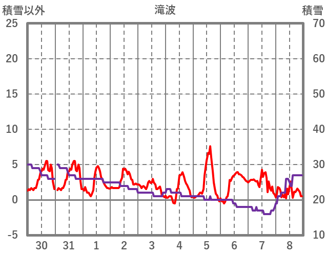 | 日 | 時 | 気温 | 降水 | 風向/風速 | 日照 | 積雪 | 降雪 |