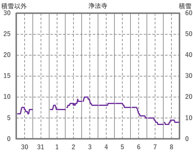 | 日 | 時 | 気温 | 降水 | 風向/風速 | 日照 | 積雪 | 降雪 |