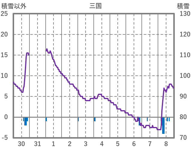 | 日 | 時 | 気温 | 降水 | 風向/風速 | 日照 | 積雪 | 降雪 |