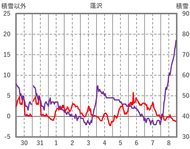 | 日 | 時 | 気温 | 降水 | 風向/風速 | 日照 | 積雪 | 降雪 |