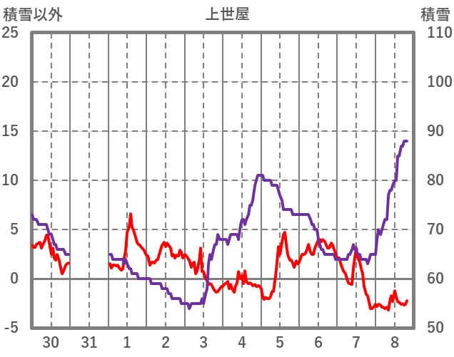 | 日 | 時 | 気温 | 降水 | 風向/風速 | 日照 | 積雪 | 降雪 |