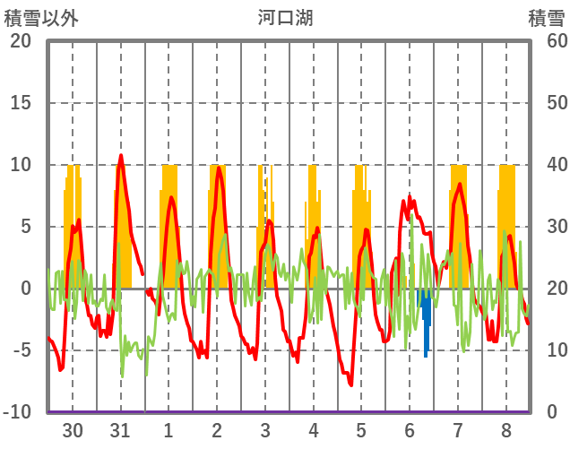 | 日 | 時 | 気温 | 降水 | 風向/風速 | 日照 | 積雪 | 降雪 |