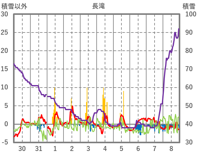 | 日 | 時 | 気温 | 降水 | 風向/風速 | 日照 | 積雪 | 降雪 |