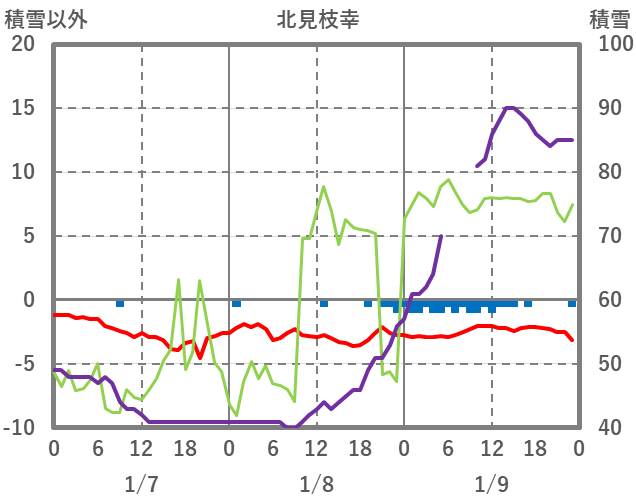 | 日 | 時 | 気温 | 降水 | 風向/風速 | 日照 | 積雪 | 降雪 |