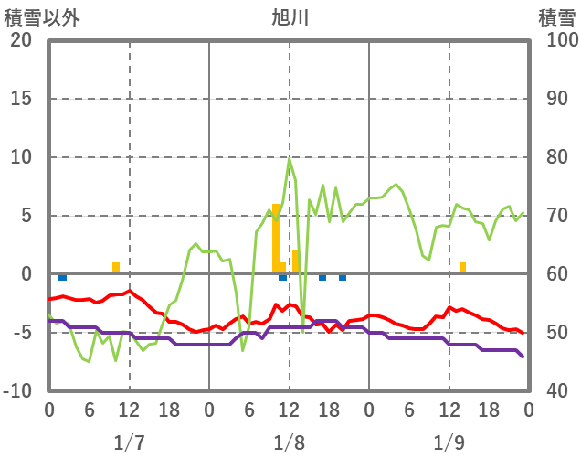 | 日 | 時 | 気温 | 降水 | 風向/風速 | 日照 | 積雪 | 降雪 |