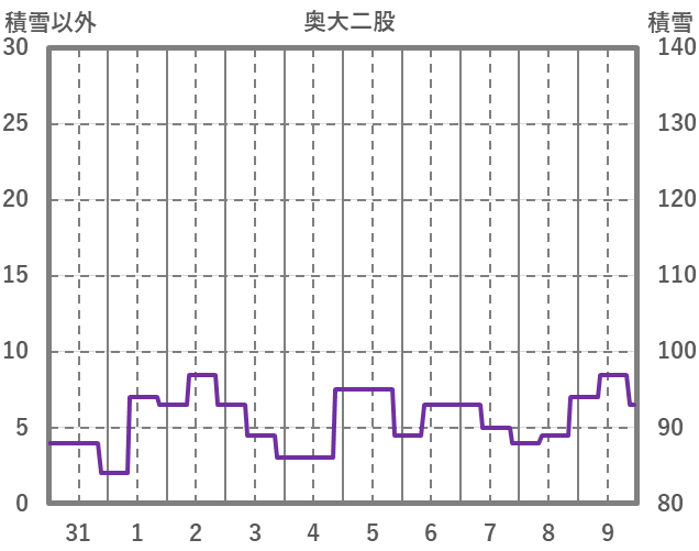 | 日 | 時 | 気温 | 降水 | 風向/風速 | 日照 | 積雪 | 降雪 |